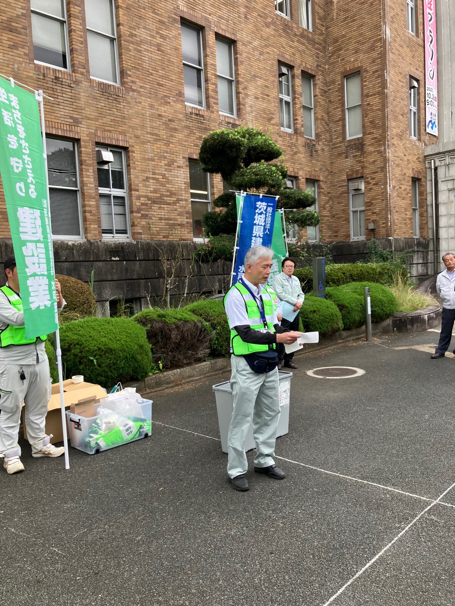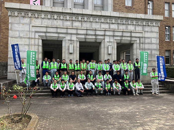 水戸土木事務所の成瀬真勝所長は「この活動を通じて道路への愛着や、美化意識が高まることを期待する」とあいさつ。田口支部長は「地域貢献はもちろんのこと、地元住民の安全と快適な環境を提供するため、安全に活動していただきたい」と呼びかけました。