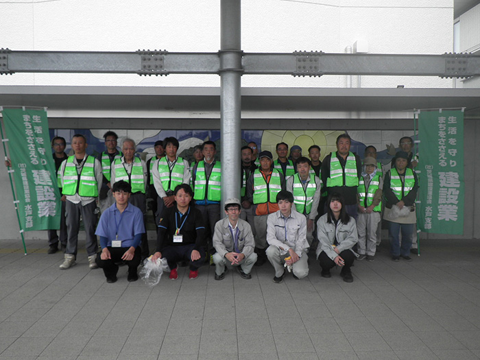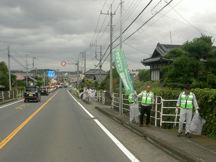 10月7日(火)、「道の日」の美化活動を水戸市、旧内原町、笠間市、小美玉市、茨城町、城里町、大洗町の7市町で実施いたしました。県水戸土木事務所や市町の職員、当支部員の参加者合わせて約200人が沿道のゴミ拾いに汗を流しました。